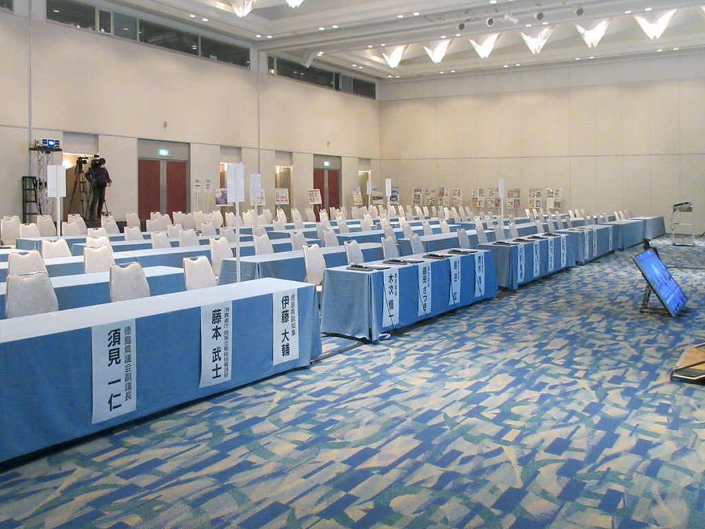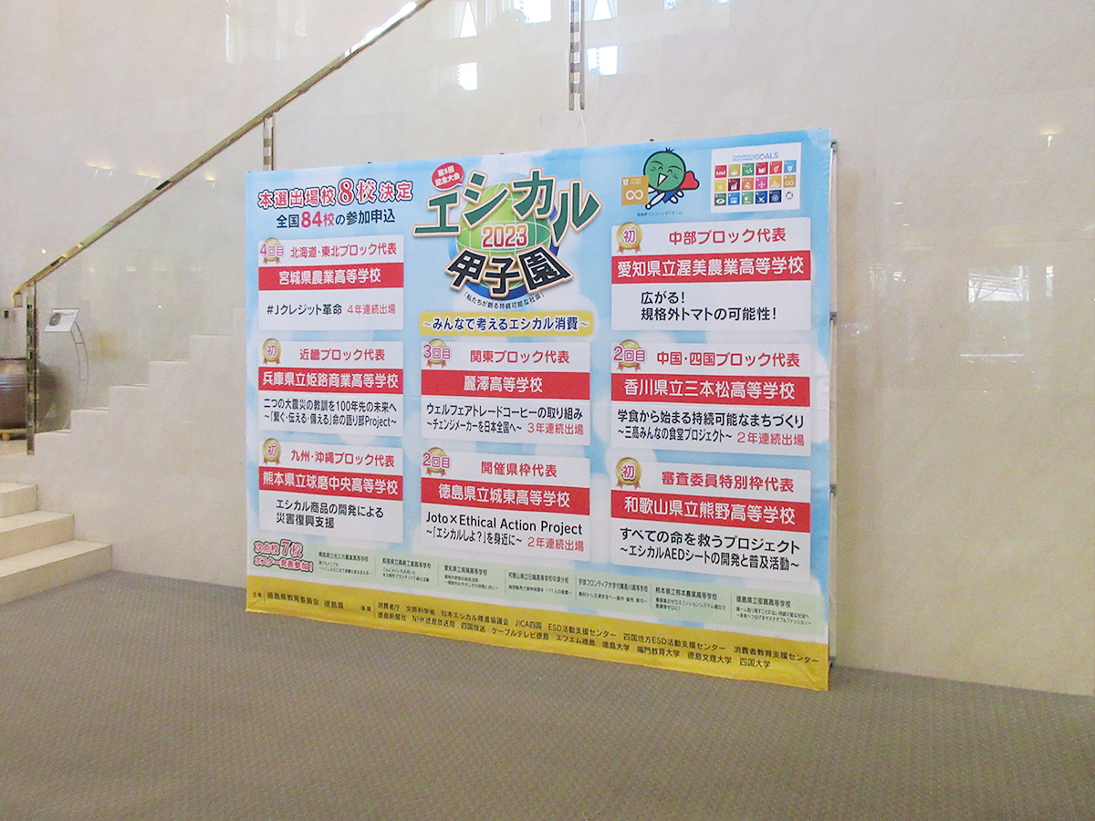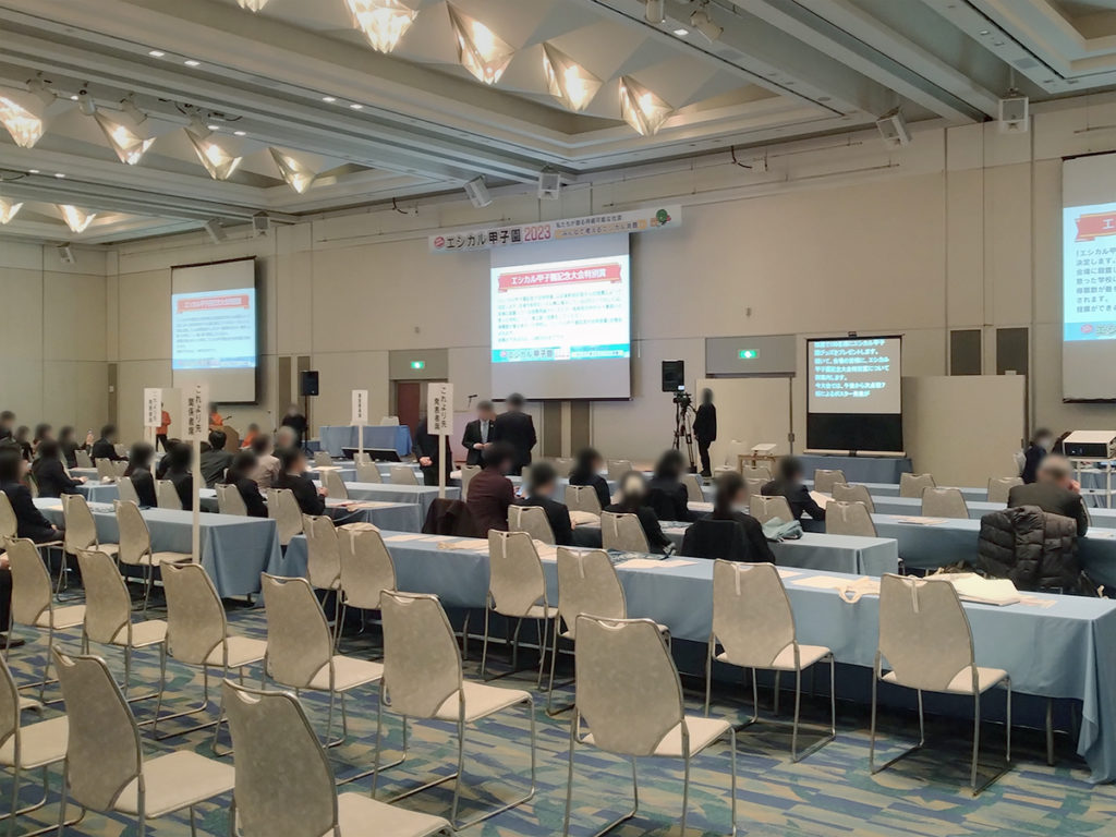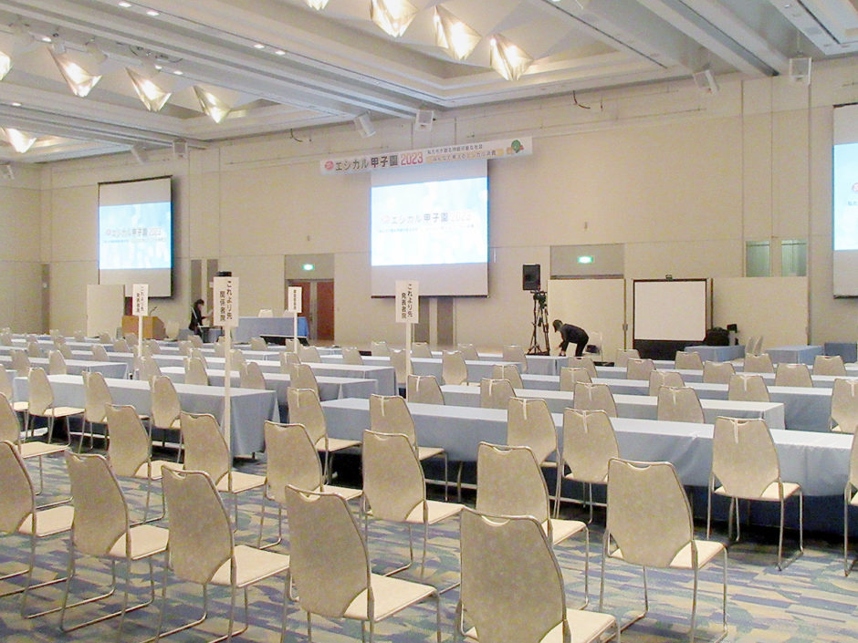 ホーム事業実績イベント業務総合エシカル甲子園20232023年12月28日2025年12月7日主催様:徳島県、徳島県教育委員会会場:徳島グランヴィリオホテル撮影:1Fホール会場内 作業内容会場にオンライン配信に関わる映像・音響設備の手間手配表示看板やSNS投稿撮影用のバック幕を作成設置