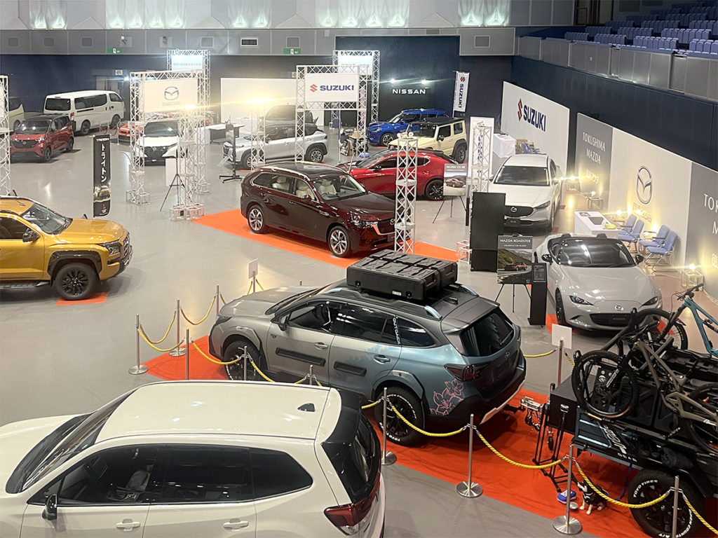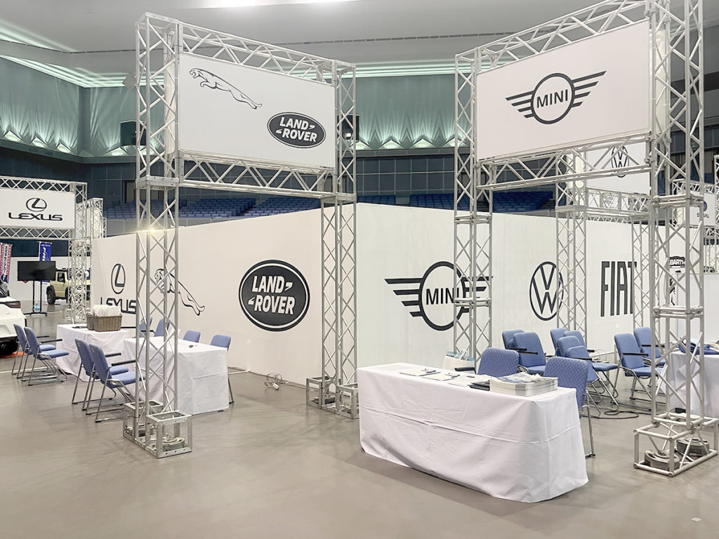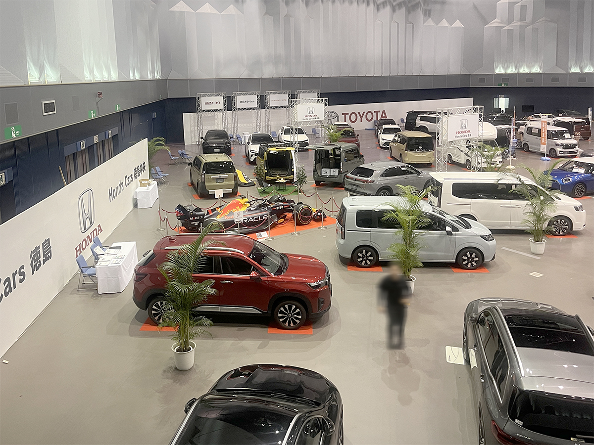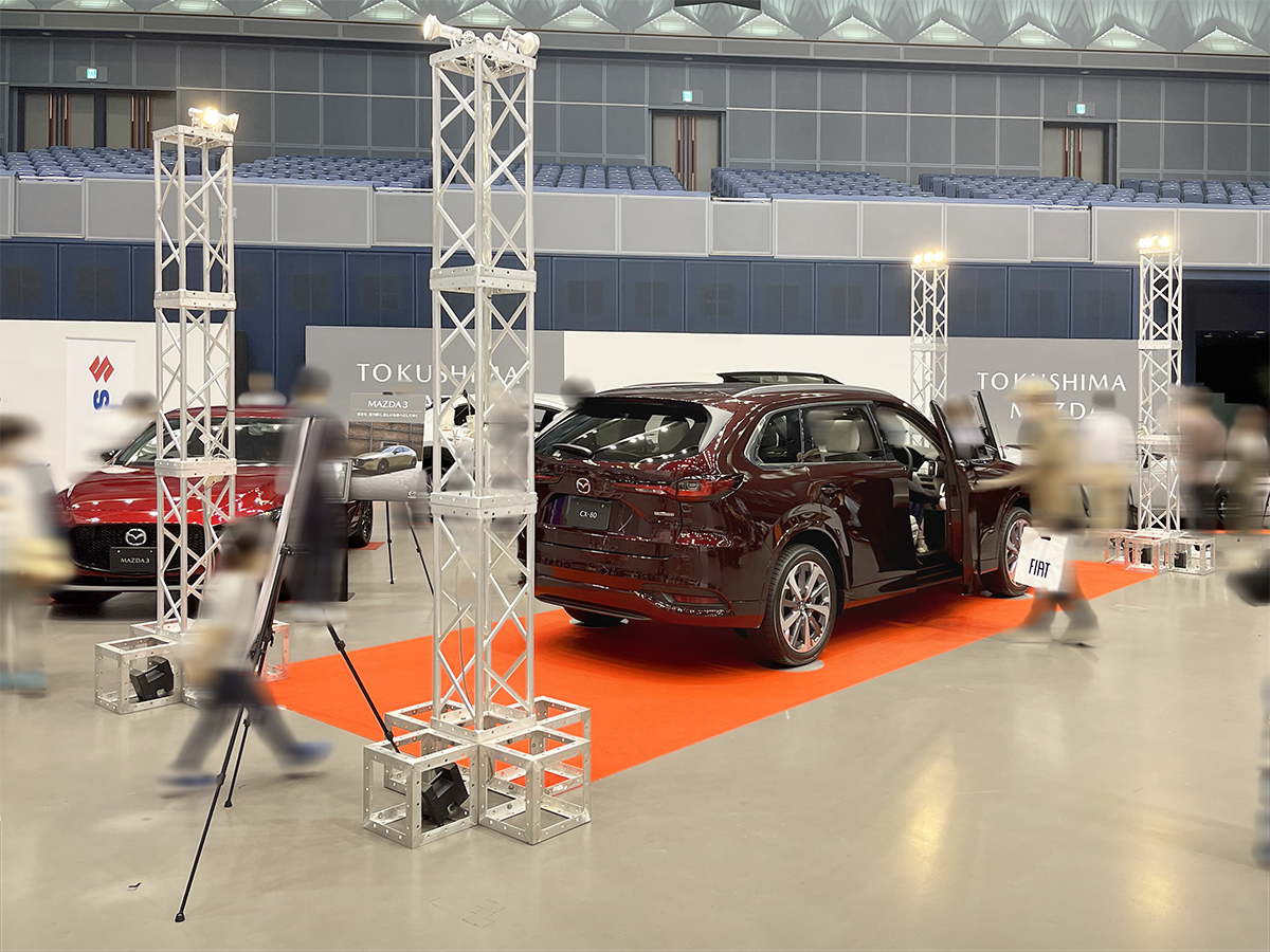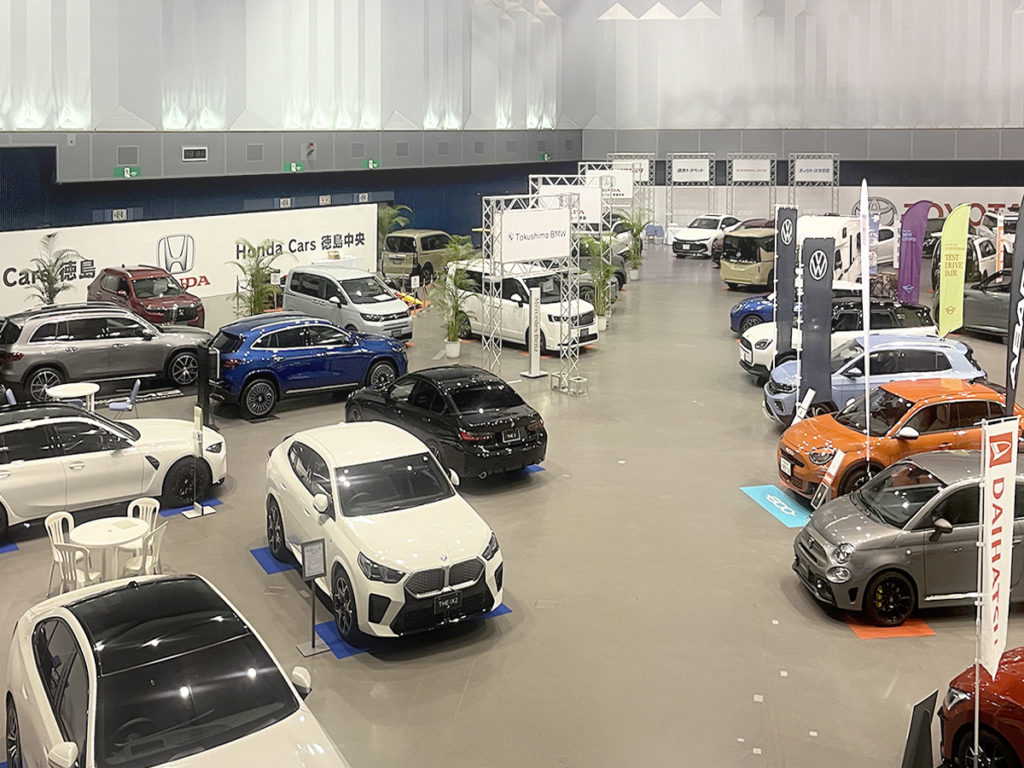 ホーム事業実績展示会・ガイダンスとくしまモビリティショー20242024年10月16日2025年12月7日主催様:日本自動車販売協会連合会徳島県支部、徳島新聞社会場:アスティとくしま撮影:多目的ホール、エントランス周辺、多目的駐車場 作業内容各ディーラー様の看板製作、グラフィックバックパネルの施工会場内の車輌展示スペースの区割り、図面作成各ブースに係る仮設電気工事の手配多目的駐車場(屋外イベントスペース)のテント業者手配